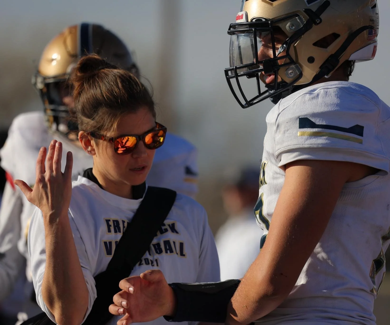 Lori with Frederick Highschool football in 2021